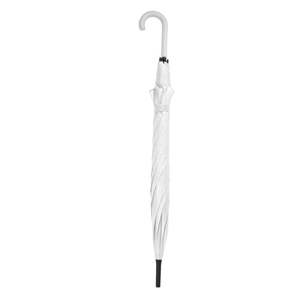 Umbrella with matching fabric and handle. Ribs and tips in black. Velcro fastening and auto-opening. 105 cm diameter.