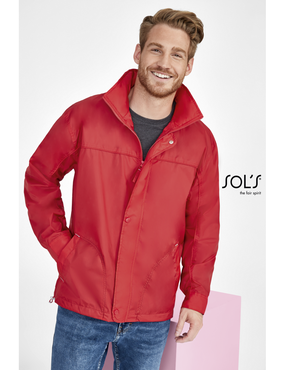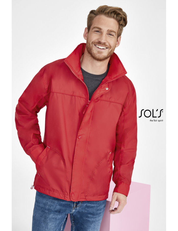 Κλείσιμο με φερμουάρ και τρουκς – Ρυθμιζόμενες μανσέτες με τρουκς – 2 εξωτερικές τσέπες χωρίς κλείσιμο – 1 εσωτερική τσέπη με φερμουάρ και 1 με velcro – Κουκούλα που διπλώνει μέσα στο γιακά με φερμουάρ – Οπές εξαερισμού στις μασχάλες – Πλαϊνά ανοίγματα με κορδόνι σύσφιξης – Λεπτομέρεια με ραφή στο στήθος και τα μανίκια – Επένδυση jersey