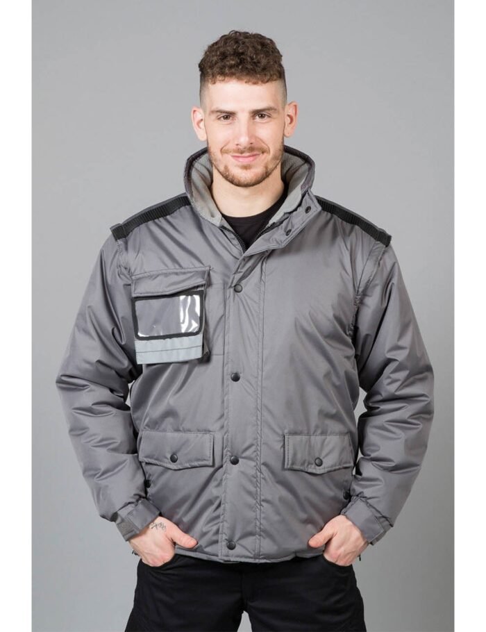 Αποσπώμενα μανίκια – Διαπνέον ύφασμα εσωτερικά – Ανακλαστικές λωρίδες μπροστά & πίσω – Αναδιπλούμενη κουκούλα – Τσέπη στο στήθος με αναδιπλούμενη τσέπη σήματος και θήκη κινητού – Θήκη για στυλό – 2 διπλές τσέπες – Εσωτερική τσέπη – Αυξομείωση στο πλάι με φερμουάρ – Ενισχυμένοι ώμοι – Αυξομείωση με velcro στις μανσέτες