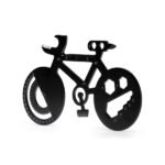 “Stainless steel multi-tools in the shape of a bicycle. 11 functions: open cans, angle conveyor, screwdrivers, wrench and rules.”