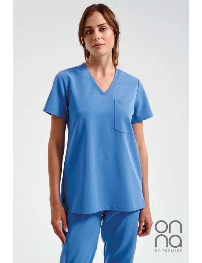 Λαιμόκοψη V – Κοντά μανίκια – Τσέπη αριστερά στο στήθος – Πένσες στην πλάτη – Διαπνέον – Ελαστικό – Ανθεκτικό – Μοντέρνα γραμμή