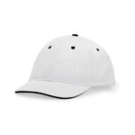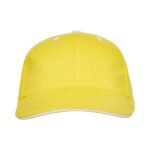 6-panel cap. 100% cotton. Contrasting sandwich. 6 vent eyelets and adjustable velcro fastening. Removable label.