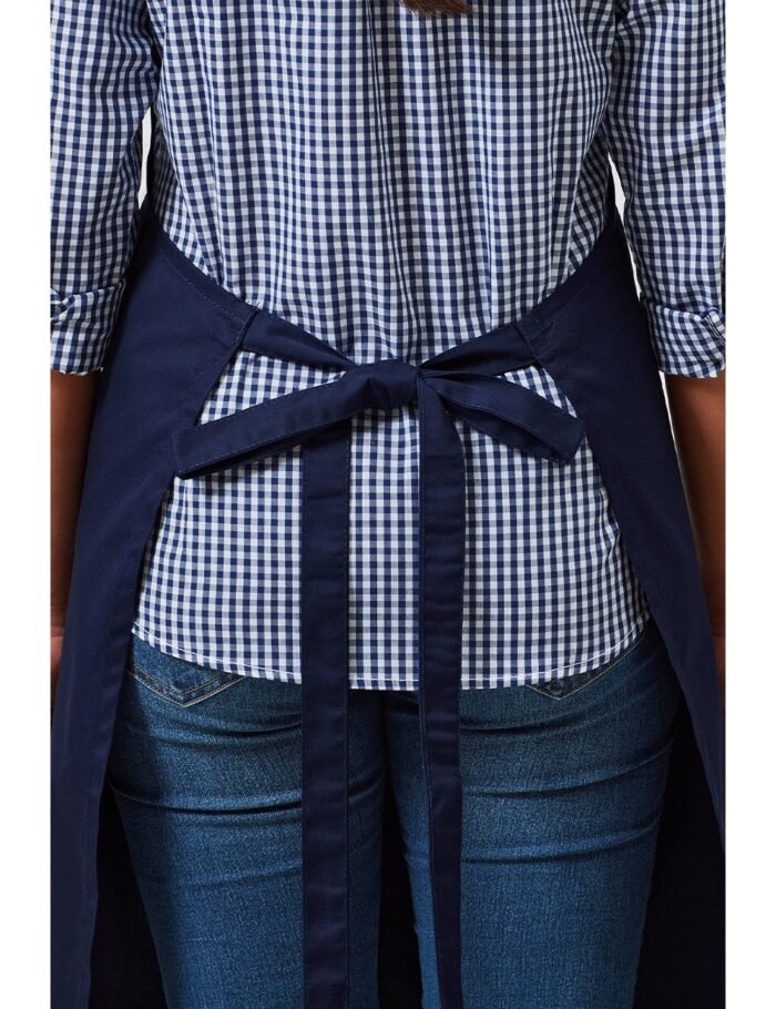 Ολόσωμη, μακριά ποδιά έως το γόνατο – Μεγάλη τσέπη μπροστά με 2 χωρίσματα – Ρυθμιζόμενη στο λαιμό με κουμπί –