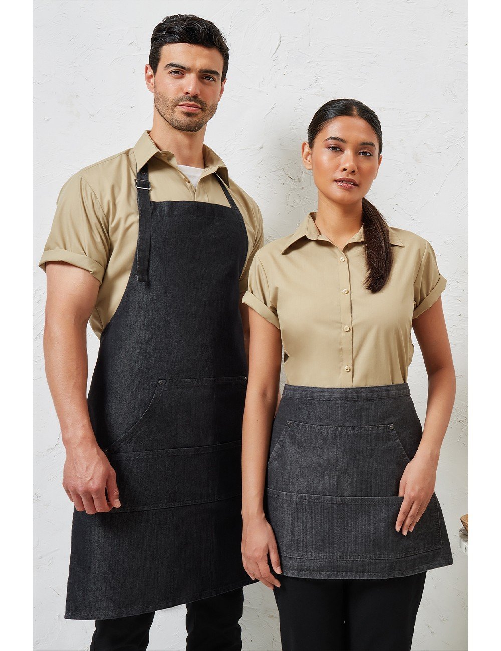 Ολόσωμη μακριά ποδιά έως το γόνατο – Εξώραφα σε χρωματική αντίθεση – Ρυθμιζόμενη στο λαιμό με μεταλλική αγκράφα – Τσέπη με 4 χωρίσματα (Πάνω: 24×27εκ. & Κάτω: 24×16εκ.) – Χάλκινα και ασημένια πριτσίνα αντικέ – Δέσιμο με λουρί στη μέση