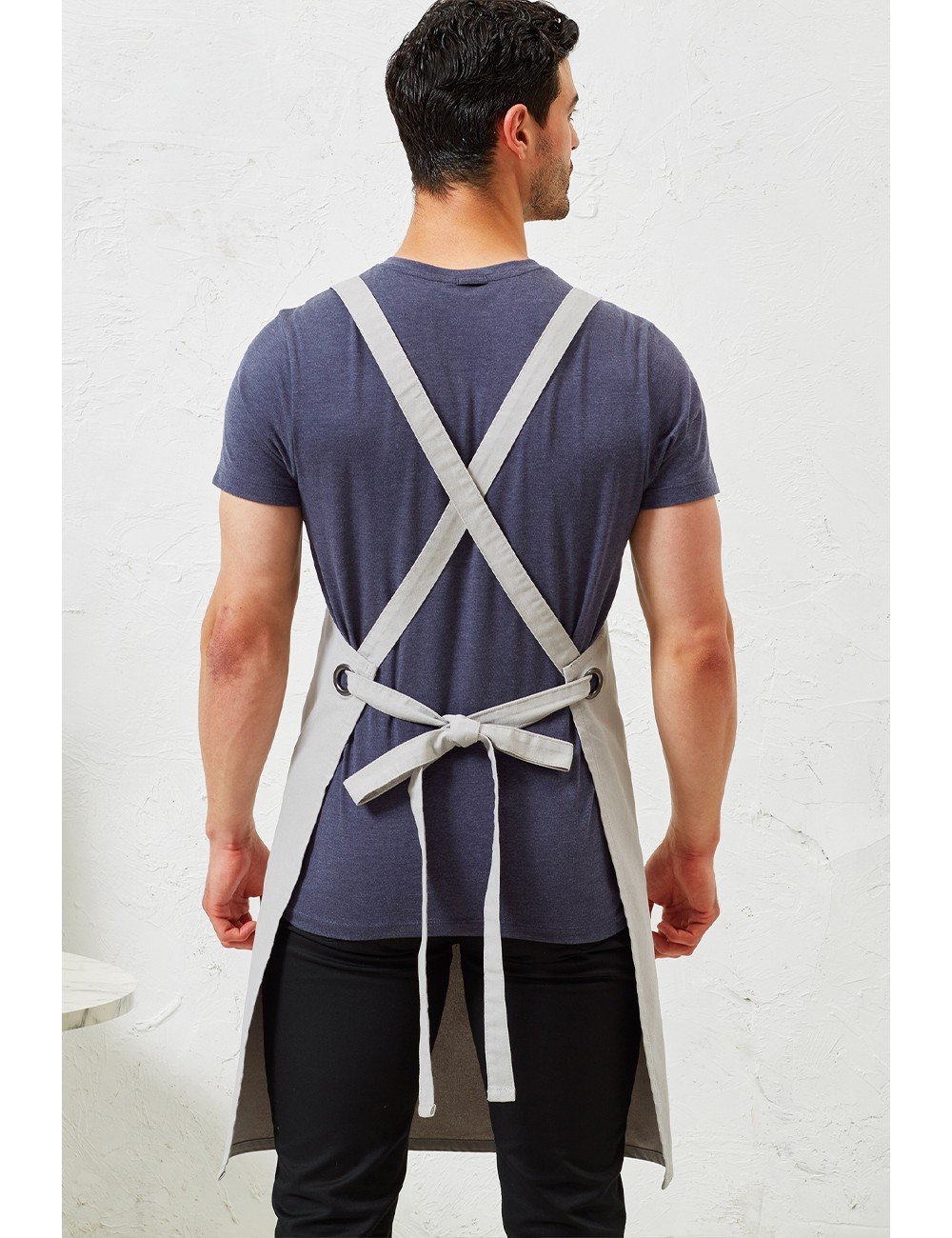 Ολόσωμη μακριά ποδιά έως το γόνατο – Υφασμάτινοι ιμάντες – Κλείσιμο με κλιπ σαλοπέτας – Μπροστινή κεντρική τσέπη (26×21εκ.) με ενσωματωμένη θήκη για στυλό – Δέσιμο στη μέση με λουρί περασμένο από μεταλλικές οπές – Διατίθενται ανταλλακτικά λουριά