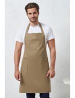 Ολόσωμη μακριά ποδιά έως το γόνατο – 1 κεντρική πάνω τσέπη (13×16εκ.) και 2 από κάτω (18×20εκ.) με λεπτομέρειες με τρουκς – Ρυθμιζόμενη στο λαιμό με μεταλλική πόρπη και κλείσιμο με κουμπί