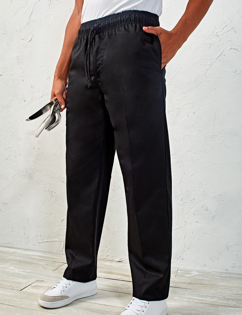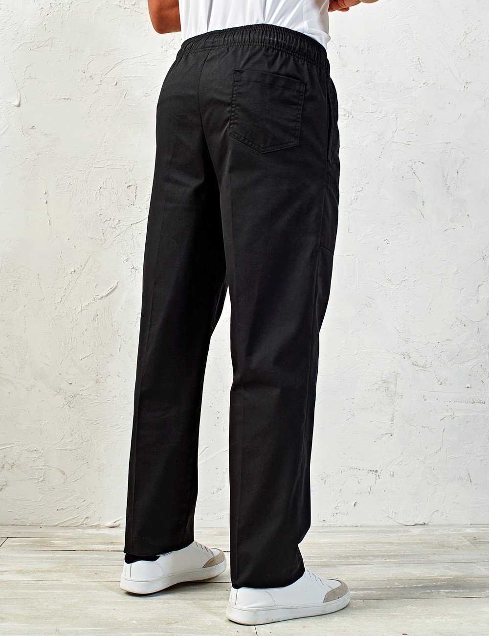 Στενή γραμμή στα πόδια – Πίσω τσέπη – Ελαστική μέση με κορδόνι και φερμουάρ