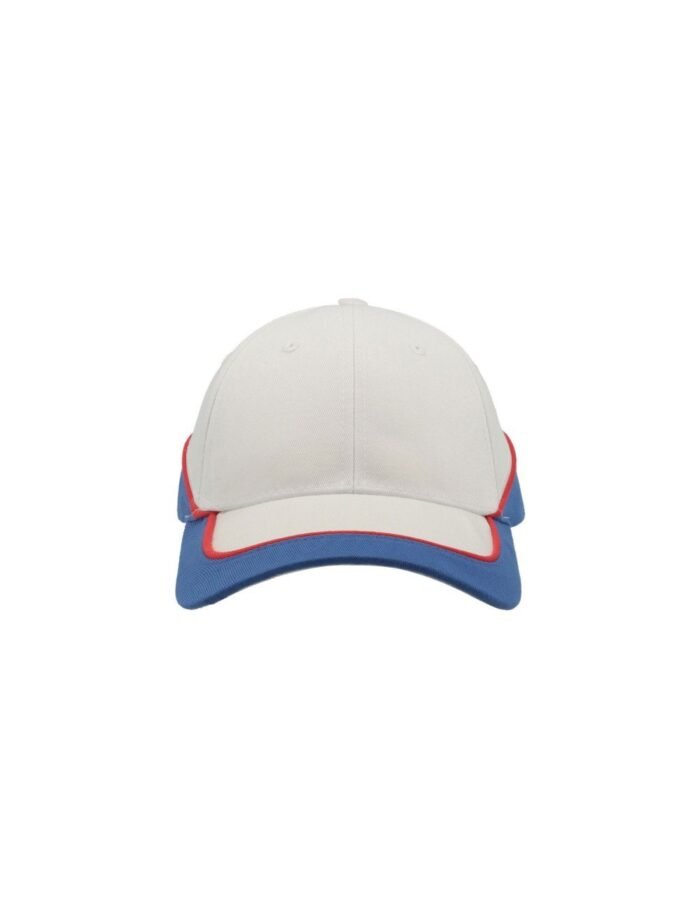 Κυρτό γείσο με 6 ραφές – Σταθερό μέτωπο – 6 κεντημένες οπές εξαερισμού – Φυτίλι στο γείσο σε χρωματική αντίθεση