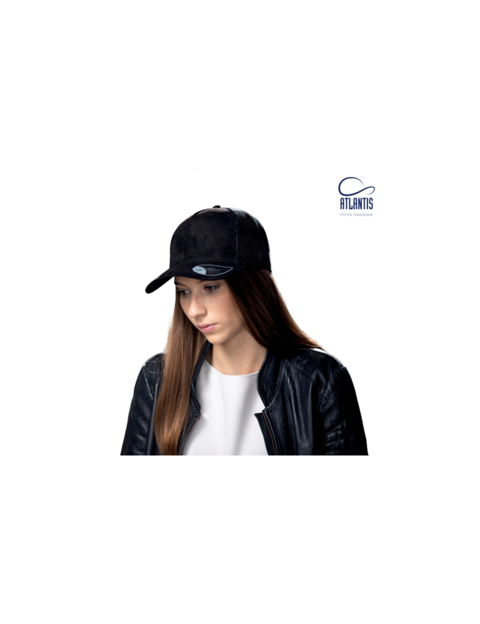 Suede ύφασμα – Δίχτυ στο πίσω μέρος – Ελαφρώς κυρτό γείσο με 8 ραφές – Σταθερό μέτωπο – Πλαστικό κλείσιμο