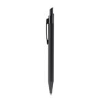 Recycled aluminium pen with matte rubber touch finish. Blue ink