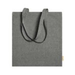 100% recycled cotton bag in heather finish with 70 cm long handles. 120 gsm.