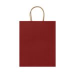 “110 gsm paper bag in natural finish, with reinforced short handles in a twisted design.”