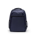 Executive backpack in recycled nylon. Roomy main compartment and padded pocket for a 15” laptop. One exterior pocket and 2 side pockets. Padded shoulder straps and back. Trolley strap.