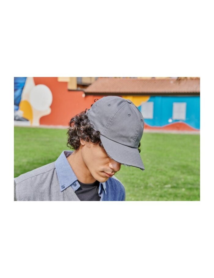 Ελαφρώς κυρτό γείσο με 8 ραφές και ξέφτια – Μαλακό μέτωπο – 6 κεντημένες οπές εξαερισμού – Πετροπλυμμένο – Κλείσιμο με αγκράφα και μεταλλική οπή