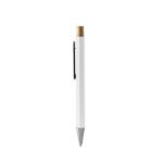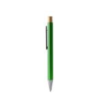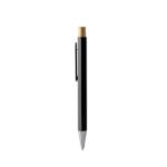 Hexagonal ball pen with metallic body and bamboo push button. Chrome-plated clip. Blue ink jumbo refill.