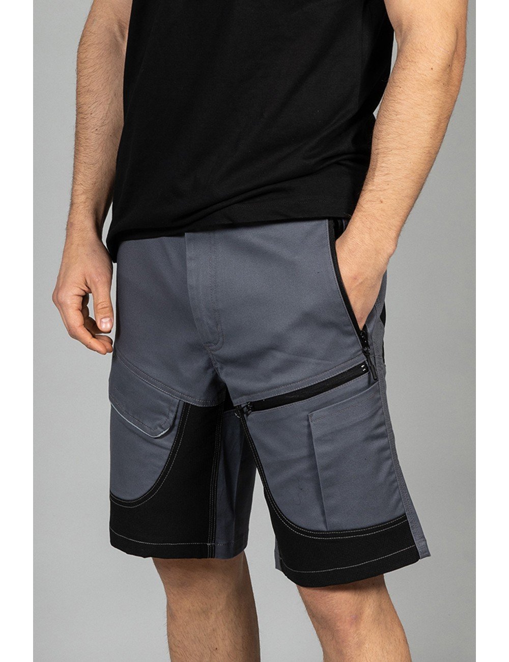 Δίχρωμο – Ανακλαστικές λεπτομέρειες – 2 τσέπες με φερμουάρ μπροστά – 1 τσέπη με velcro στο δεξί μηρό, 1 τσέπη με φερμουάρ & 1 ανοιχτή στον αριστερό μηρό – 1 πίσω τσέπη για το μέτρο & 1 πίσω τσέπη με φερμουάρ – Ελαστική μέση – Μεγάλα θηλύκια για τη ζώνη