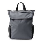 “Backpack made of PU Leather with zip closure. Wide interior compartment with removable pocket for 15″” laptop. Outer flap with double zip closure pocket and 2 side mesh pockets. Padded handles and back. Capacity: 20L.”