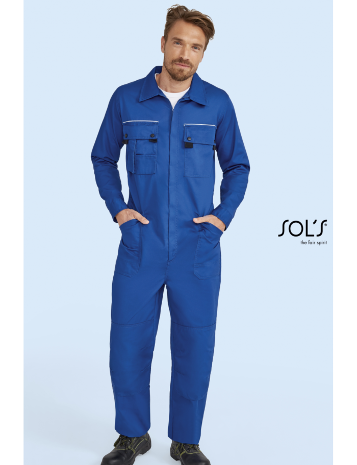 Φόρμα εργασίας με στηθούρι και τιράντες – λάστιχο στο πίσω μέρος – Κλείσιμο με φερμουάρ στον καβάλο – Πλαϊνά κουμπιά