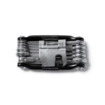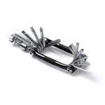 “Multi-tool in stainless steel. Compact design. 11 functions, including screwdrivers and chain tool. Presentation in design box.”