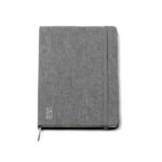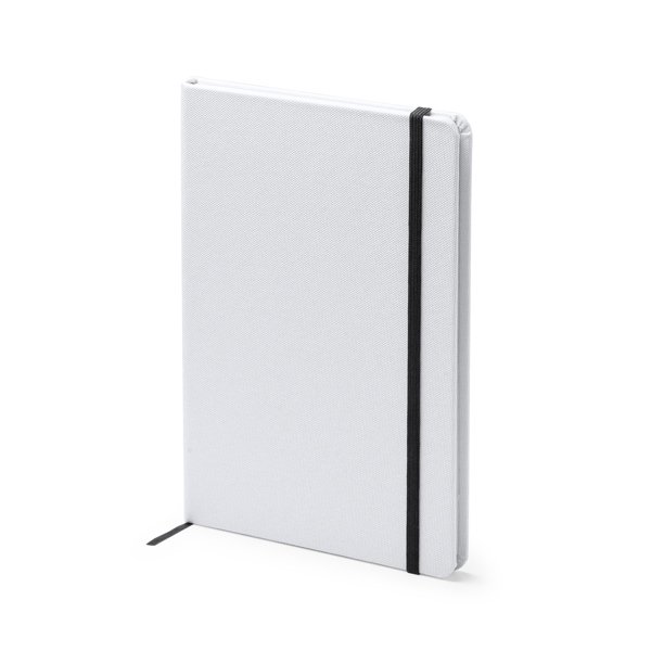 A5 notebook with hard covers in RPET. Matching bookmark and elastic band. 80 sheets.