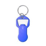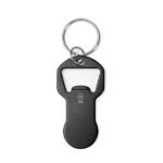 Recycled aluminum keychain bottle opener with coin for the shopping cart. Wide marking area.