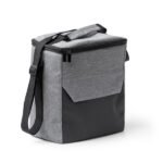 Cooler made of PU leather and 300D RPET with isothermal interior. Large main compartment and external pocket with zip closure. Handle with reinforcement and adjustable carrying strap.