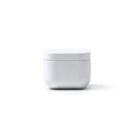 Scented candle in a square metal recipient. Vegetable wax with lavender aroma. Presentation in eco design box.