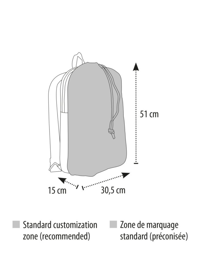 Μεγάλος κύριος χώρος με φερμουάρ και διπλή εσωτερική τσέπη – Μπροστινός χώρος που κλείνει με κορδόνι – Ρυθμιζόμενοι ιμάντες μεταφοράς από βαμβάκι – Ενισχυμένη πλάτη