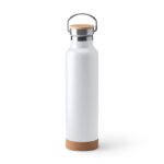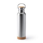 “304 Stainless Recycled Steel Thermal Bottle is the perfect choice to keep your drinks cold or hot for hours. With its double insulation wall, it will maintain the temperature of your drinks efficiently. The bamboo lid and cork base give it a natural and sustainable touch, as well as providing a non-slip grip. With a capacity of 650 ml, it is ideal for taking with you to work, while you play sports or when travelling.Made from high quality recycled steel, this bottle is durable and sturdy. Enjoy your favorite drinks anywhere, anytime in style and without worrying about the temperature. Environmentally friendly bottle.”