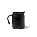 Double-walled recycled 304 stainles steel mug with screw lid and handle. 350 ml capacity. Presentation in eco design box.