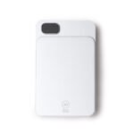 10000 mAh magnetic external battery with wireless charging function. Display screen displaying the charging percentage. Recycled aluminium body. Output current 15W. Includes Type-C cable and magnetic ring. Presentation in eco design box.