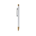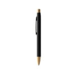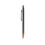 Rubber-finish metallic pen with push-button and bamboo details. Chrome-plated clip. Blue ink jumbo refill.