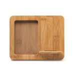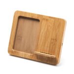 Wireless charger with photo frame made of bamboo. Ideal for 10 x 15 cm pictures. Compatible with wireless technology devices. 10 W. Cable included.