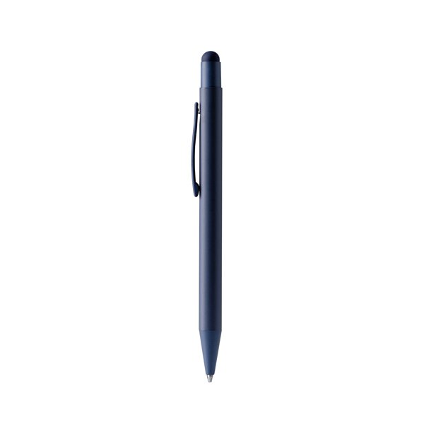 Metallic ball pen with matte finish matching the touch pointer. Blue ink jumbo refill.